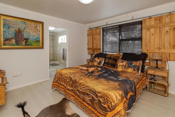 The main residence is designed to make everyday living and entertaining effortless. A bright, open-plan lounge welcomes you in, flowing into a modern, well-appointed kitchen complete with a gas hob, under-counter oven, and generous cupboard space. Adjacent to the kitchen, a dedicated braai room with a built-in braai sets the scene for cosy evenings or lively gatherings.