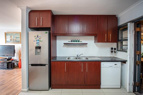 The main residence welcomes you with generous, light-filled living spaces, designed with entertaining in mind. An expansive lounge flows seamlessly into the stylish kitchen, featuring granite countertops, a gas stovetop, an under-counter oven, a double sink, and ample space for your appliances. Just off the kitchen, you will find an inviting braai room with a built-in braai, perfect for year-round gatherings.