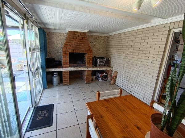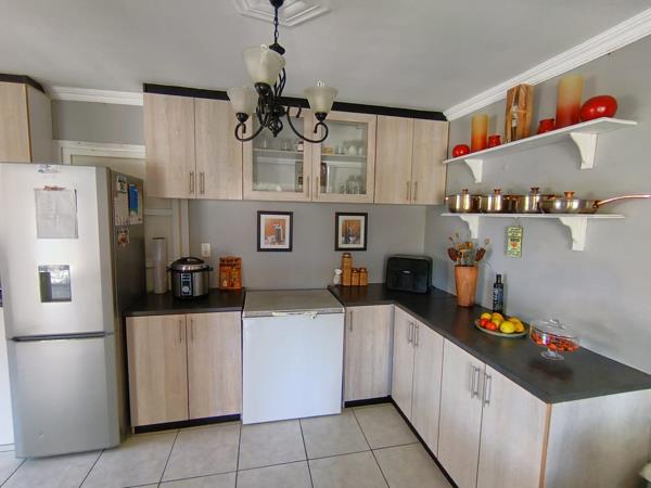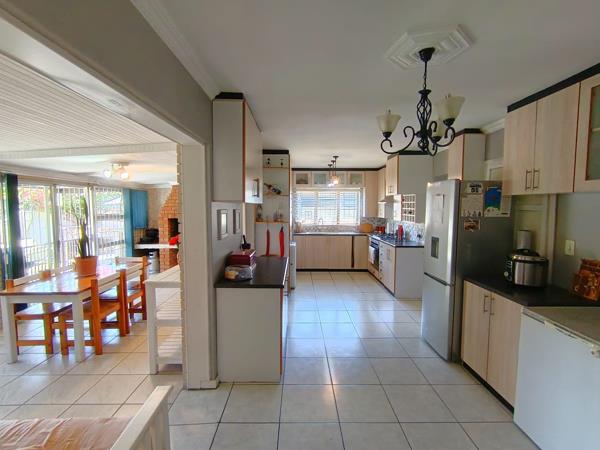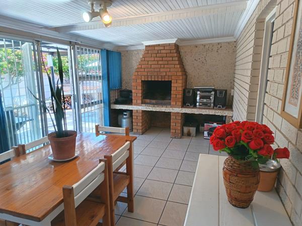 A charming, well-appointed kitchen offers ample cupboard space and room for a breakfast table. From here, you step into a generously sized indoor braai room that leads out to a covered stoep, outdoor braai area, swimming pool, and jacuzziyour private entertainment haven.