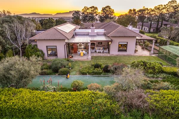Tucked away in the exclusive and secure Klein Zevenwacht Estate, this exceptional designer residence offers a unique opportunity to live surrounded by the charm of a working vineyard.