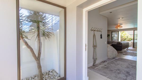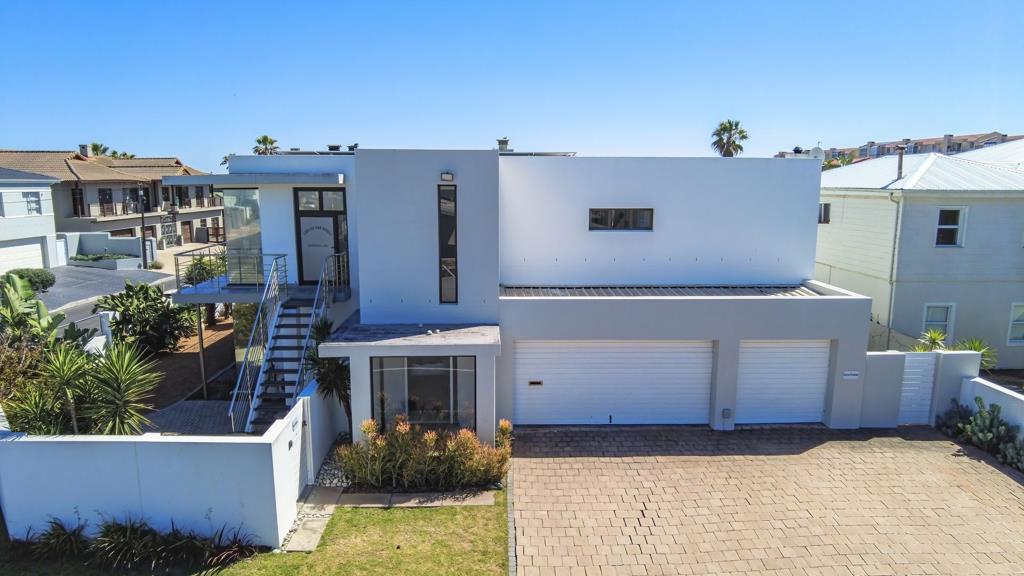 The exterior spaces are equally impressive, featuring multiple balconies and a spacious patio, perfect for enjoying the coastal breeze and panoramic views. A private, sun-drenched garden with established trees and high walls offers a tranquil retreat, complete with a swimming pool for leisure and relaxation. The property benefits from a triple garage and additional paved parking, accommodating multiple vehicles with ease. 2x built-in braais further enhances the outdoor entertainment possibilities.