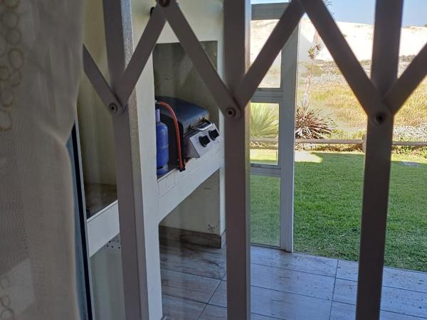 This ground-floor apartment spans 122 square meters and features three spacious bedrooms, including a master suite with an en-suite bathroom. The additional bedroom and bathroom ensure comfort and convenience for all residents. The open-plan kitchen and living area provide an ideal space for family gatherings, with easy access to the outdoor porch. The porch, fitted with aluminium windows and a built-in braai, offers a perfect spot to enjoy the coastal breeze, dine outdoors, or relax with family and friends.