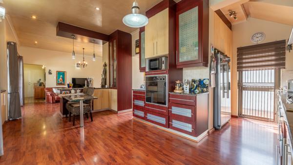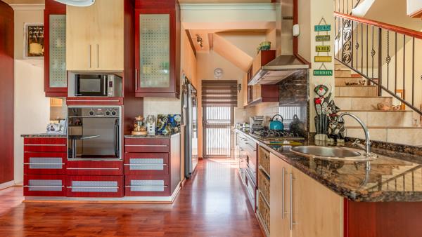The heart of the home is a designer, open-plan kitchen with a separate laundryscullery area, perfect for hosting any gathering. Sliding doors connect the indoors to the outdoors, leading to balconies, a sparkling pool, a private garden oasis, and an undercover WINDLESS braai patio.