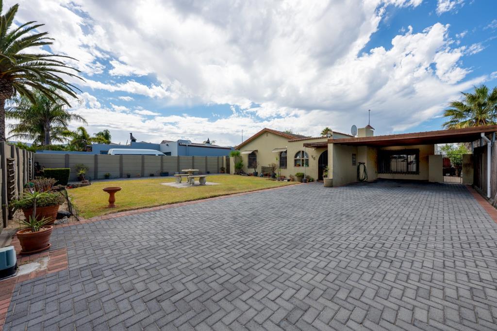 Outside, the property features an expansive low-maintenance front garden with ample parking available behind a secure gate. There is an undercover double carport, making this home ideal for families with multiple vehicles. This well-maintained home offers comfort, space, and security in a prime location. In addition, the property offers two air-conditioned bedrooms. All windows are fitted with burglar bars and safety gates, and the property includes a Wendy house used for storage.