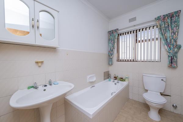 The home is light-filled and airy, offering a comfortable layout with three well-sized bedrooms, all featuring built-in cupboards. The one and a half bathrooms include a family bathroom with bath, basin, and toilet, as well as a main en-suite bathroom with shower, basin, and toilet.