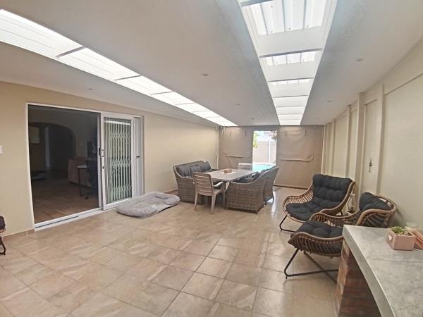 The home also boasts a generous entertainment area with a built-in braai, perfect for hosting family and friends.