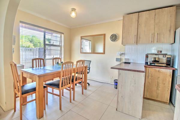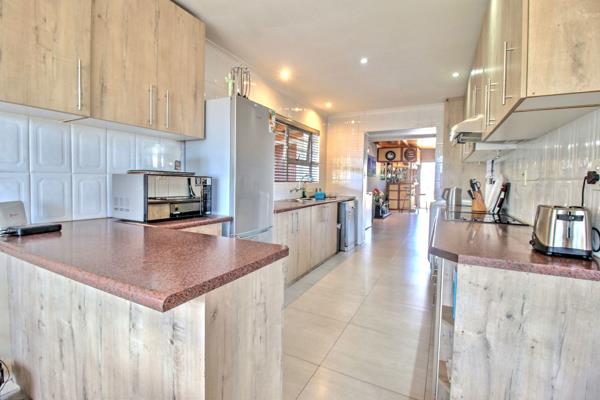 The home welcomes you with a bright and airy lounge, filled with natural light and flowing effortlessly into the dining area and kitchen. The kitchen is well-appointed with ample cupboard space, a centre island, and a separate scullery area, creating a practical space for everyday cooking and family gatherings.