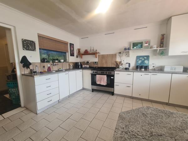 The open-plan lounge, dining room, and kitchen create a warm and inviting living space. The fitted kitchen is equipped with a gas stove and electric oven, and theres a separate laundry conveniently located off the kitchen.