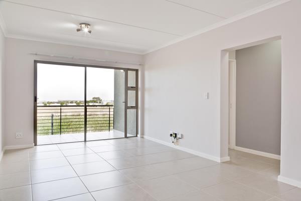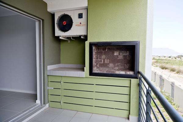 The living area boasts ample natural light and leads out to your spacious balcony with a build in braai.