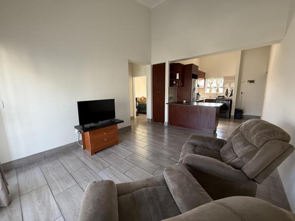 Upon entering, you''re welcomed by an open-plan kitchen on your right and a spacious living area, both enhanced by striking double-volume ceilings. The kitchen is well-equipped with an electric stove, oven, cooker hood, double sink, ample cupboard space, and a water point for added convenience. A sliding door from the living area opens onto a private balcony perfect for relaxing or entertaining.