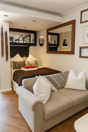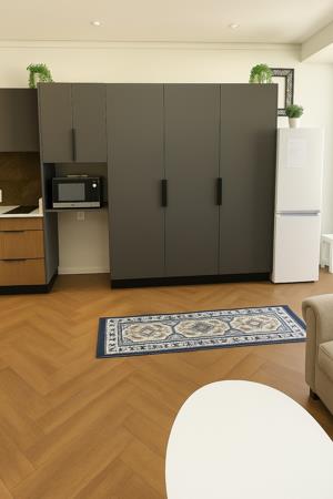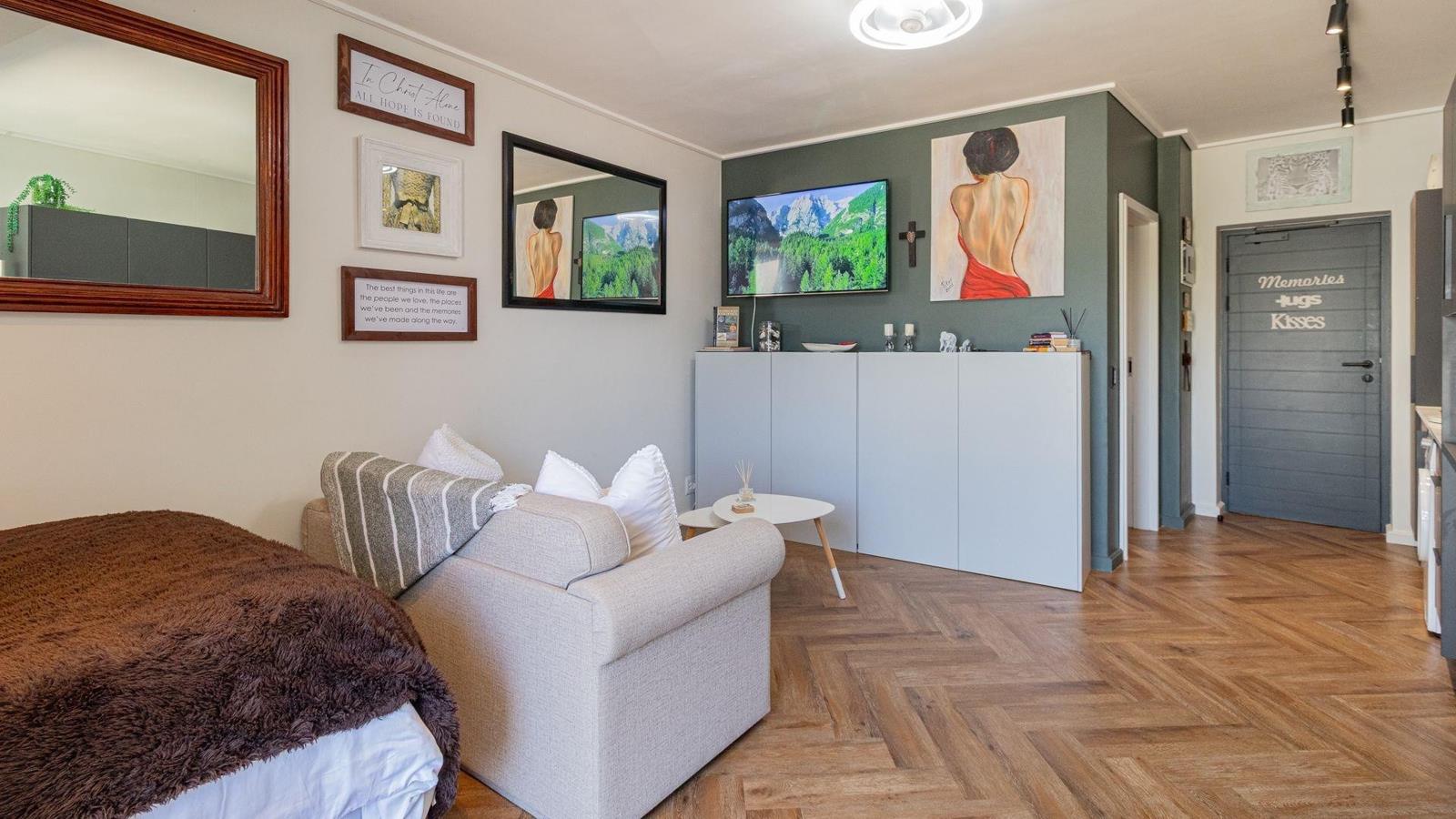 The apartment boasts a smart, open-plan layout enhanced by quality finishes throughout - from the sleek kitchenette with a built-in stove and water point, to the modern bathroom featuring a spacious walk-in shower and elegant vanity.