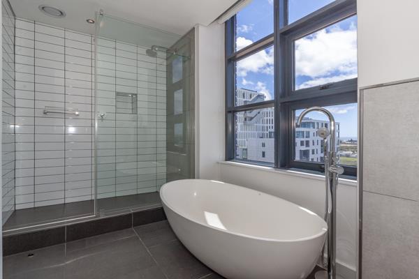 Experience sophisticated urban living in this exceptional 2-bedroom corner apartment, perfectly positioned to capture panoramic views of both Table Mountain and the Atlantic Ocean, including Robben Island. Designed for those who value elegance, comfort, and a convenient lock-up-and-go lifestyle.
