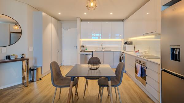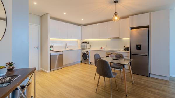The expansive primary bedroom offers abundant built-in cupboards, a luxurious full en-suite bathroom complete with a walk-in shower, bath, and vanity and its own private balcony. Both the bedroom and bathroom showcase exceptional views of Table Mountain. The second bedroom is equally impressive, offering generous space and captivating mountain views.