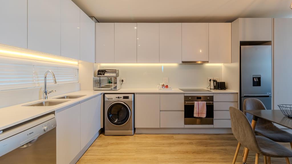 This beautifully designed two-bedroom apartment features a unique layout that sets it apart from the standard configurations within the building. The spacious open-plan kitchen and living area flow effortlessly onto a generous private balcony, perfectly framing the iconic surroundings. The stylish, fully equipped kitchen includes two water points, providing enhanced practicality.