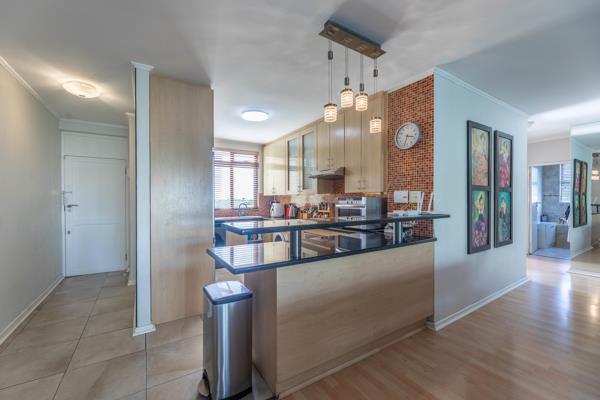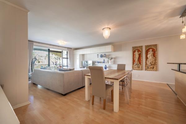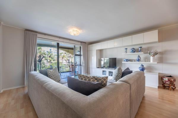 The large living and dining area flows onto a canal-facing balcony with glass stacking doors, seamlessly extending the space. Customised built-in cabinetry maximises both style and functionality. The main bedroom, with ample cupboard space, also overlooks the canal and opens onto a private balcony. The second and third bedrooms share a spacious, sunny balcony.