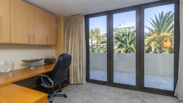 The enclosed patio with stacker doors is currently used as a work-from-home office, providing a flexible and tranquil workspace. The apartment includes two secure parking bays and access to top-tier amenities, including an indoor heated training pool, gym, and an outdoor poolperfect for hot summer days.