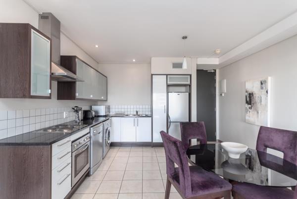 The open-plan kitchen is fully equipped, making it easy for residents to prepare meals and enjoy the convenience of modern appliances.