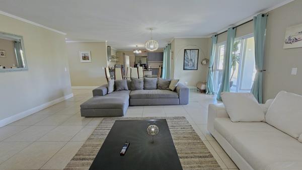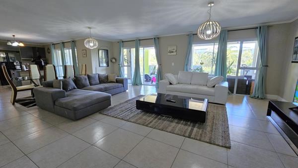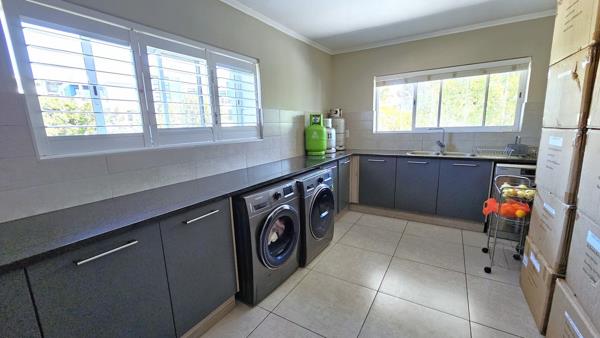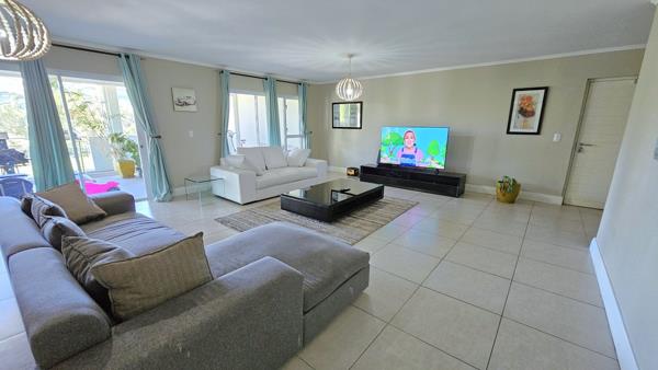 The main living area flows seamlessly onto the enclosed balcony, fitted with stackable glass doors for flexible use as a braai area or a secure play space. Additional features include a dedicated home office, a guest loo, high-speed fibre, and stylish American Shutters.