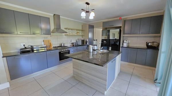 The open-plan kitchen is a chef''s delight, featuring granite countertops, ample storage, and a separate scullery with three water points. It comes equipped with a Bosch gas hob, oven, and extractor fan.