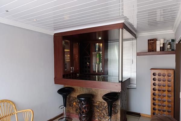 Unwind in the spacious lounge or entertain guests in the dining area, which flows seamlessly into the renovated kitchen. After a long day, create memories with loved ones in the built-in bar. This well-maintained home prioritizes your safety with an alarm system, burglar bars and aluminum windows, giving you peace of mind.