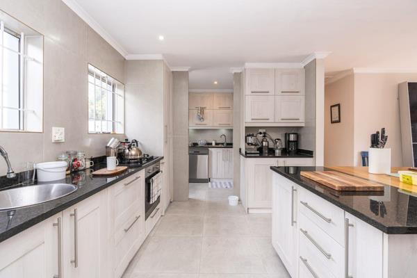 The open-plan kitchen is a chef''s delight, complete with a scullery and ample built-in cupboards, seamlessly flowing into the dining room and lounge for effortless entertaining.