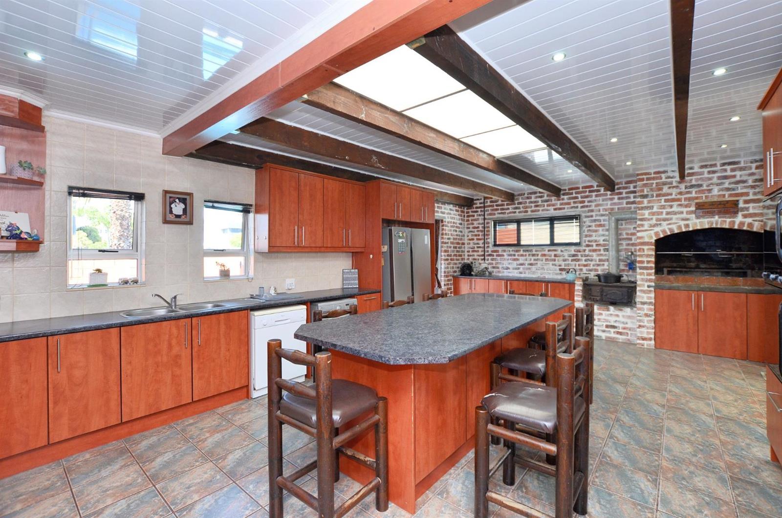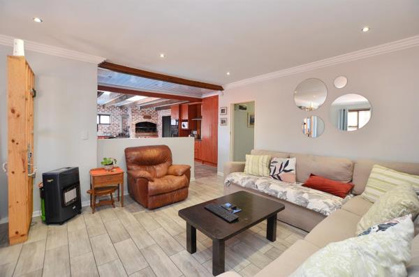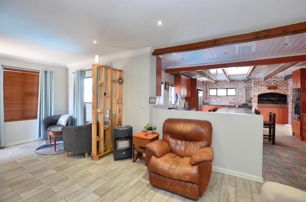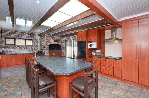 Adding character and charm is a striking facebrick feature wall, complete with a mounted vintage Dover stove and an indoor braai fitted with a spit braai motor and equipment perfect for year-round entertaining.
