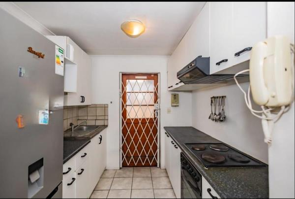 The home features a spacious tiled lounge with wooden blinds, burglar bars, and a retractable light fitting with rechargeable globes. The fully fitted kitchen offers ample cupboard space for storage, electric stove, and an extractor fan. The newly renovated bathroom includes new shower taps, new basin, toilet and spacious shower