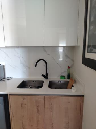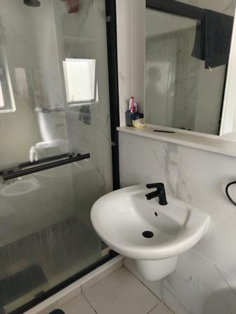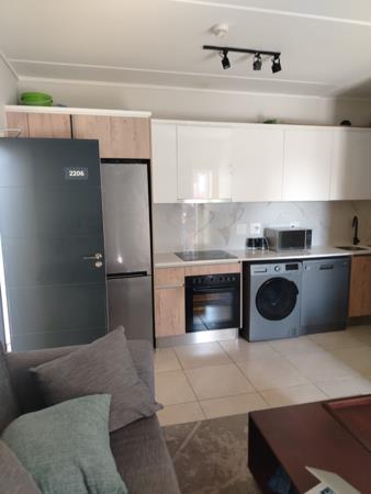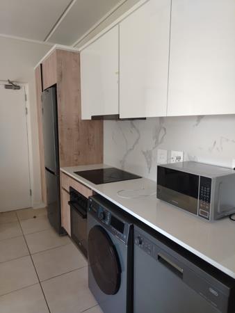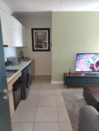 The spacious bedroom includes built-in cupboards and a sleek en-suite bathroom, creating a tranquil retreat at the end of the day.