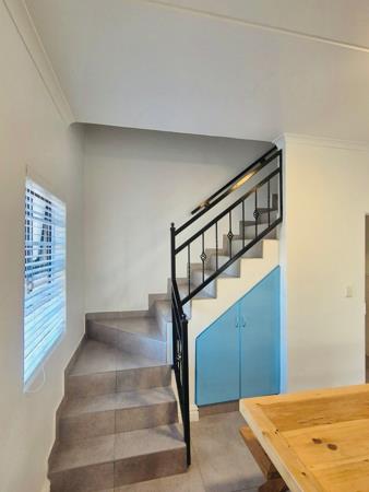 A tiled staircase leads to the upper level, where you''ll find three bedrooms, each fitted with built-in cupboards. The air conditioning ensures comfort during those warm summer nights.
