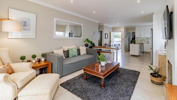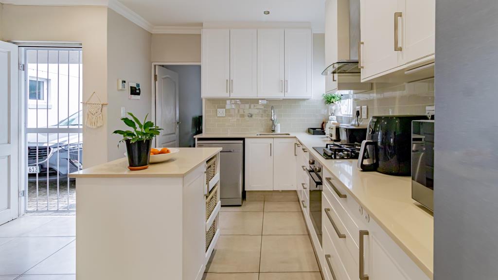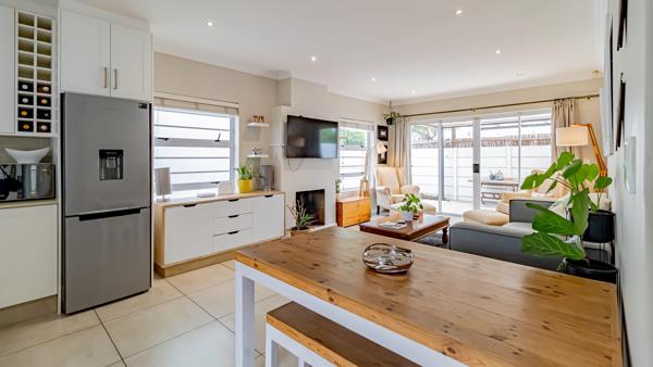 Step outside to a charming, low-maintenance garden with artificial grass and a built-in braaiperfect for entertaining. The property includes a single garage, secure parking, and additional visitor parking conveniently located across from the home.