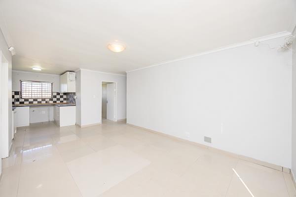 The living room is spacious with plenty of floor space for a living room and dining area, with freshly painted walls and tiling in great condition.