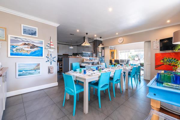A large dining room, breakfast room, fully equipped kitchen and laundry area.