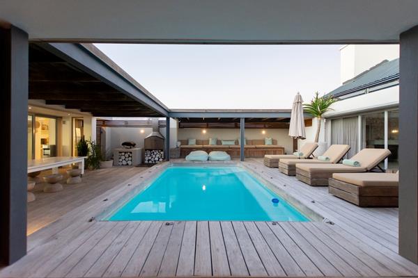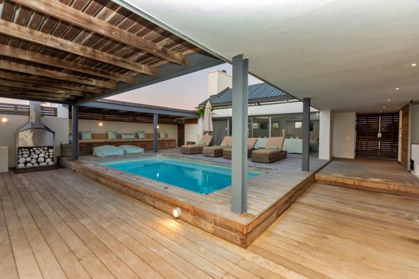 The heart of the home is the sheltered courtyard, featuring a private pool, braai, pizza oven, and ample lounging space. Shielded from the wind yet connected to the sea view, its a tranquil oasis made for long summer days and intimate evenings under the stars.