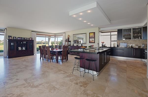 Upon entry, youre welcomed by a grand foyer and extra-wide hallways leading into the spacious open-plan kitchen, dining, and lounge area, perfectly positioned on the 4th fairway. The gourmet kitchen is equipped with built-in appliances, a central island ideal for family gatherings, and a large scullery accommodating three appliances. Every angle of this living space captures sweeping golf course views and flows seamlessly to a sun-drenched, wind-protected patio the perfect setting for entertaining family and friends.