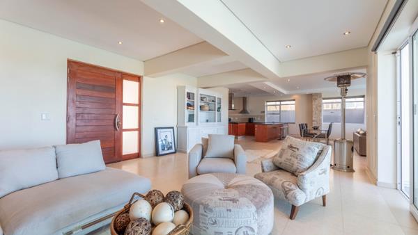Upstairs offers a large 2 bedroom both en suite apartment with an open plan living room and kitchen. This apartment has spectacular views of Table Mountain and the Atlantic Ocean, it has a large wrap around balcony for entertainment and magnificent sunsets there is no comparison to this home on the Estate. The home overlooks the coastal reserve.