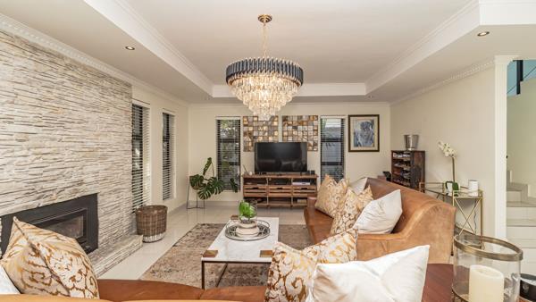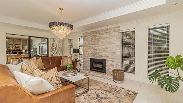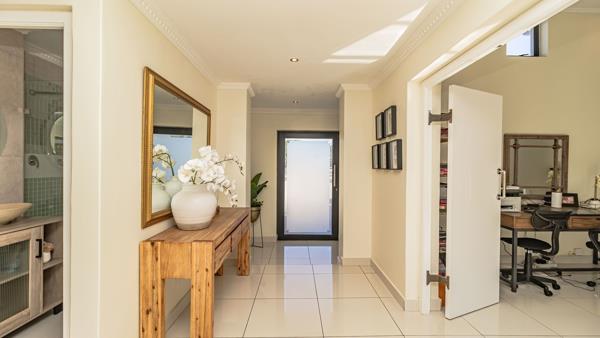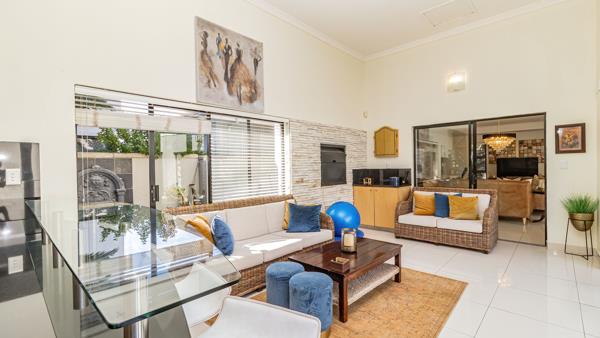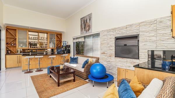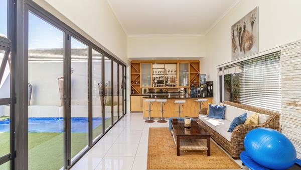 There is a cinema style TV lounge, open plan kitchen dining and lounge with a further bar entertainment room. The U-shape home has a centre courtyard with pool and synthetic grass. The guest bedroom and bathroom shower complete downstairs.