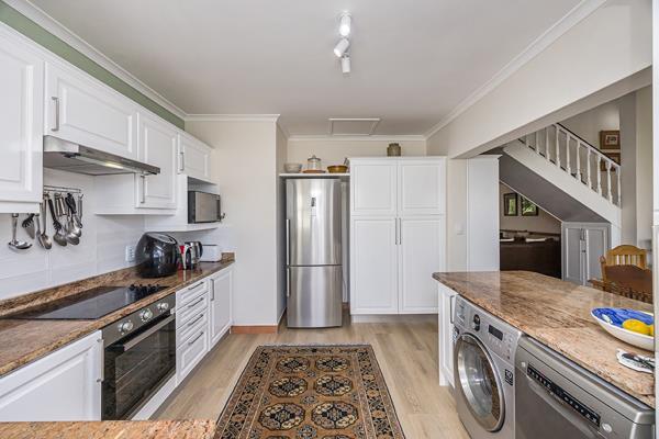 With a resort-like feel, Woodbridge Island is known for its relaxed coastal vibe with natural surroundings of the Atlantic Ocean, lagoon and birdlife in a 24hr manned security residential estate This double storey property provides a wonderful interior flow enjoying both the flora and fauna of the lower level and enjoying sea views and sounds of the ocean from the upper level balcony Upon entering the home you welcomed into generous and open plan living areas with north to south windows allowing for loads of natural light and enjoying the flora and fauna of the estate A granite topped kitchen completed with white cupboards is a great size and there is an additional drying yard The dining area also has a fitted drinks bar area before leading to the lounge interior Leading out from the lounge sliders is a north facing entertainment patio area with lush landscaped garden A guest bedroom secondary main offers a spacious bedroom and private lounge area fitted with cupboards and en-suite shower with easy access out to the north facing garden Upstairs is a master bedroom with en-suite shower and a balcony soaking up the views and sunshine Second bedroom home office also offers a guest bathroom bath Recent upgrades include stackable interior shutters and vinyl flooring throughout Single 19sqm auto garage and parking bay is provided across the communal lawned area Getting onto the beach is a quick hop via the walkways within a short two minute walk from this unit itself Communal facilities include landscaped grounds, pools and walkways encouraging a sense of community but still allowing complete privacy