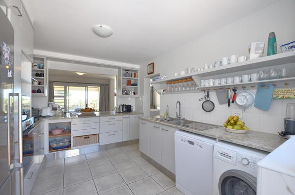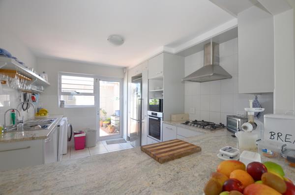 The kitchen is spacious and kitted with beautiful counter granite tops, ample built-in cupboards, gas hob, electric oven, extractor fan, space for a front loader and dishwasher and space for single door fridge. It leads out onto a majestic courtyard which leads to a generous bachelor pad complete with an en-suite shower and private entrance from the courtyard.