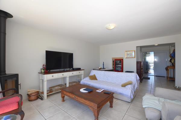 Upon entry you are greeted by a spacious entrance hall, with a generous-sized guest toilet downstairs. It leads to a spacious open plan lounge and dining room kitted with a combustion fire place, leading out onto a small fenced garden, well-suited for your fur baby. The dining room leads onto a covered patio complete with awnings to block out those windy days.