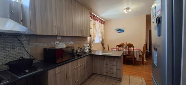 Beautiful modern kitchen that is fully fitted and the bathroom is also very modern, laminating floors throughout the property with tiles in the kitchen and bathroom area.