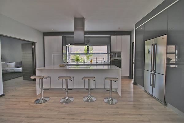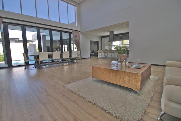 Experience the Pinnacle of Privacy and Security in Single-Storey Living. This luxurious single-story home offers an open-plan layout with double-volume ceilings, creating an airy and sophisticated atmosphere. It features three spacious en-suite bedrooms, four garages for ample storage, and a dedicated entertainment lounge for hosting gatherings.