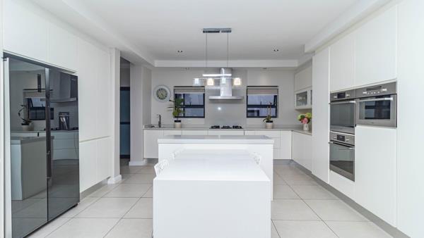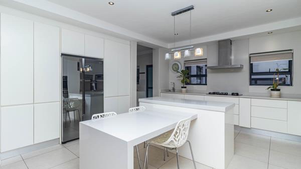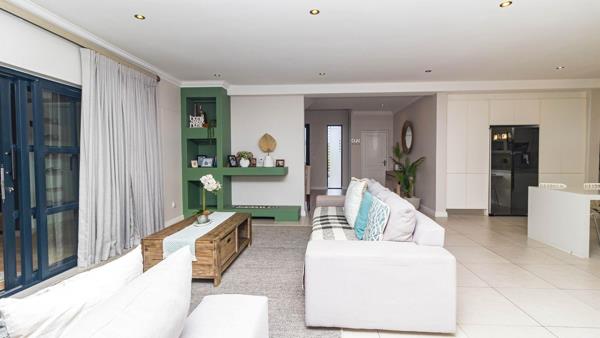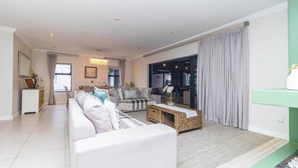 At the heart of the home, the sleek open-plan kitchen makes a bold statement with its contemporary finishes, generous workspace, and separate utility room for streamlined functionality. The adjoining dining and lounge areas create an easy indoor flow, leading into a light-filled entertainment room complete with an indoor braaiperfect for hosting in any season.