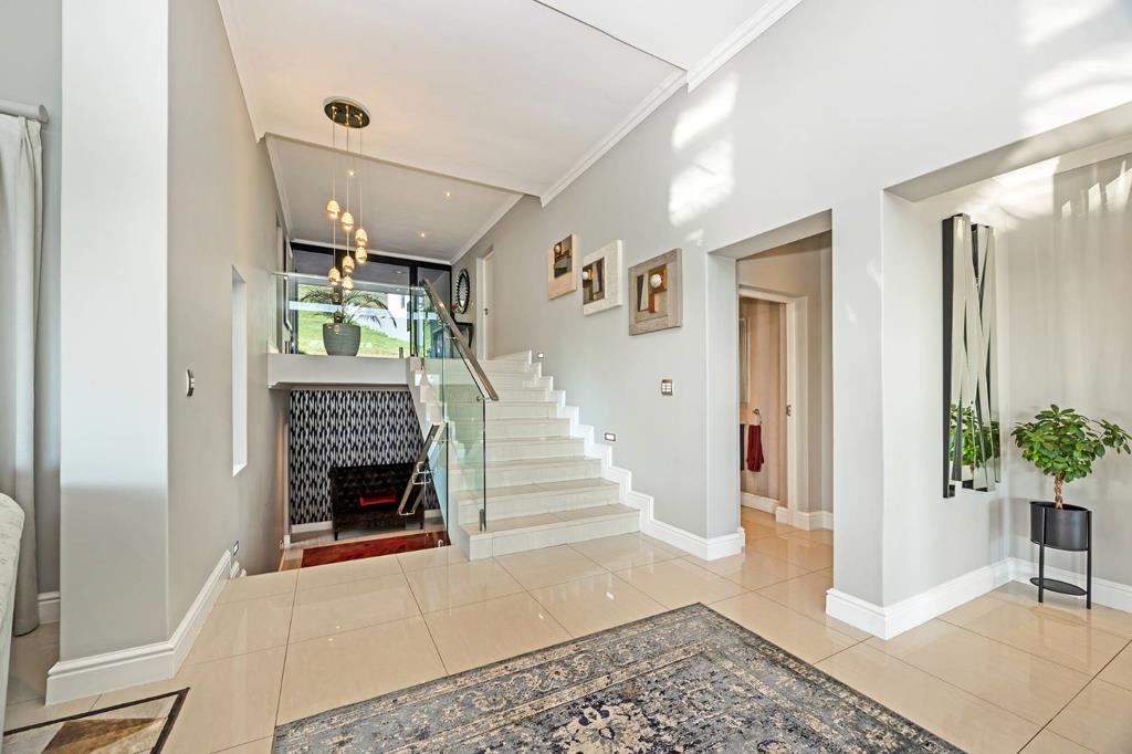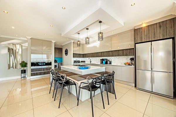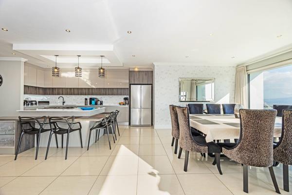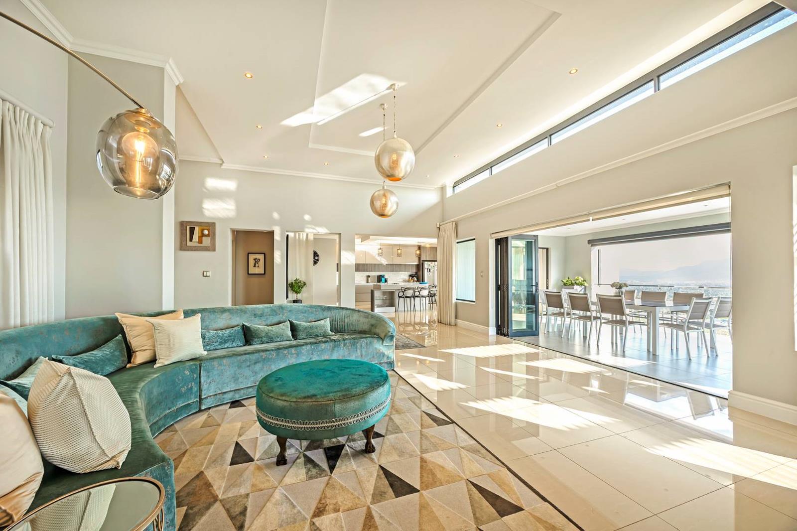 Flowing seamlessly across three levels, the home has been designed for effortless living and exceptional entertaining. At its heart, a bespoke designer kitchen a hobby chefs dream integrates beautifully with an elegant dining area, where a wide picture window captures the ever-changing mountain skyline. Expansive reception areas open to a sunlit patio with a stylish undercover braai, leading to a heated pool that offers both privacy and world-class views.