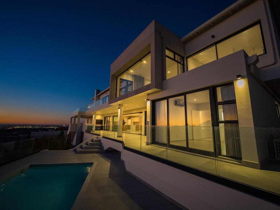 Welcome to an extraordinary masterpiece nestled in the highly sought-after Baronetcy Estate, where world-class architecture meets unrivalled luxury. This exceptional 5-bedroom home has been meticulously designed to capture 360 panoramic views of Table Mountain, the Atlantic Seaboard, and the glittering cityscape, offering a lifestyle of complete serenity and sophistication.
