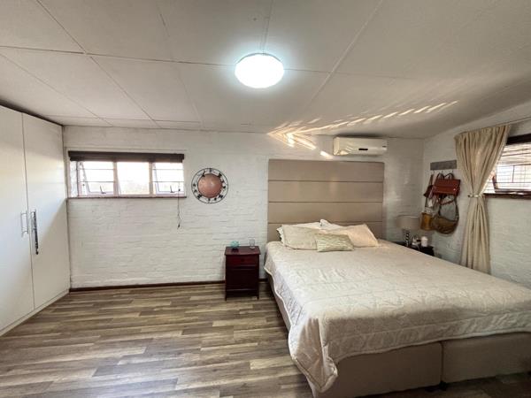 Spacious main bedroom with built-in cupboards, en-suite bathroom, and air conditioning.