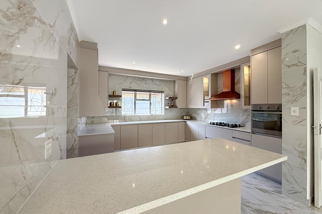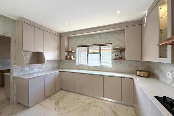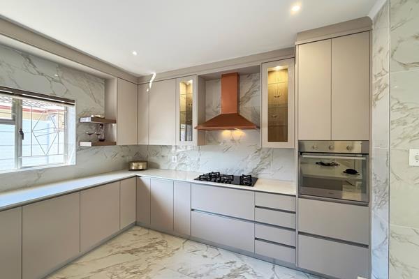 At the centre of the home, the chefs kitchen is a true masterpiecewrapped in Caesarstone finishes and fitted with a gas hob, sleek extractor, and a dedicated scullery. Its open layout flows effortlessly into a warm family lounge and an expansive indoor braai roomdesigned with entertaining in mind, from refined soirées to intimate dinners. A separate dining room adds an extra layer of grandeur to your hosting experience.