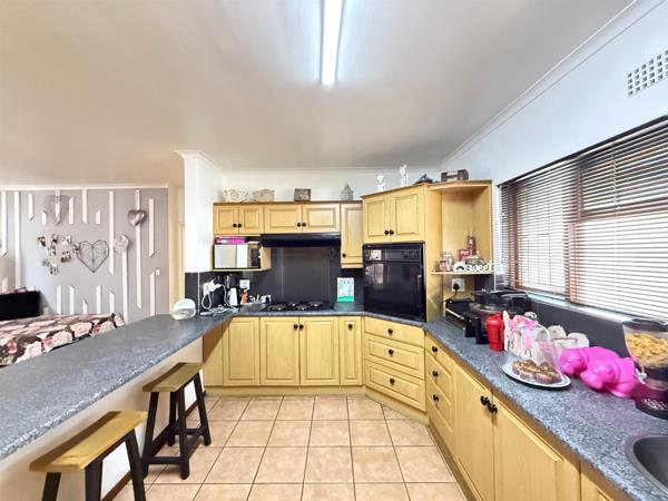 At the heart of the home is a sleek, modern kitchen that flows effortlessly into the dining area and formal lounge, extending into an expansive indoor braai room the ultimate entertainers space. Complete with a built-in bar and sliding doors opening to the lapa and sparkling swimming pool, this home is designed for both lifestyle and value.
