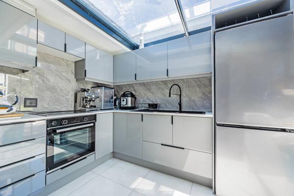 Designed with easy family living in mind, the home welcomes you with a spacious open-flow layout where contemporary finishes blend seamlessly with thoughtful design. The generous kitchen forms the true heart of the home, featuring a central island with gas cooker, ample cabinetry, and a natural flow into the dining area. From here, doors open onto an inviting outdoor entertainment space perfect for weekend braais, relaxed afternoons with friends, or simply enjoying the garden and sparkling pool.
