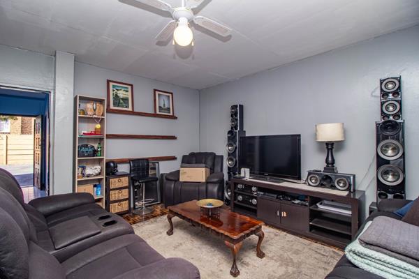 A generously sized living room ideal for entertaining or unwinding, complete with comfortable seating and attractive parquet flooring.