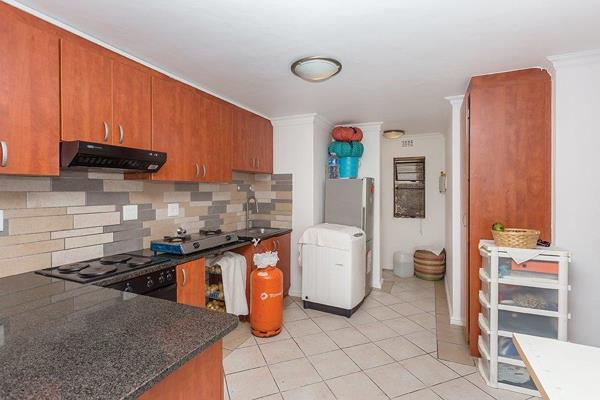 This ground floor apartment offers modern comfort with direct access to a patio and the communal garden, creating an inviting indoor-outdoor flow. The property is neat and well-finished, tiled throughout, and features built-in cupboards in both bedrooms as well as the kitchen. The open-plan kitchen boasts stone countertops and a plumbing point for your washing machine.